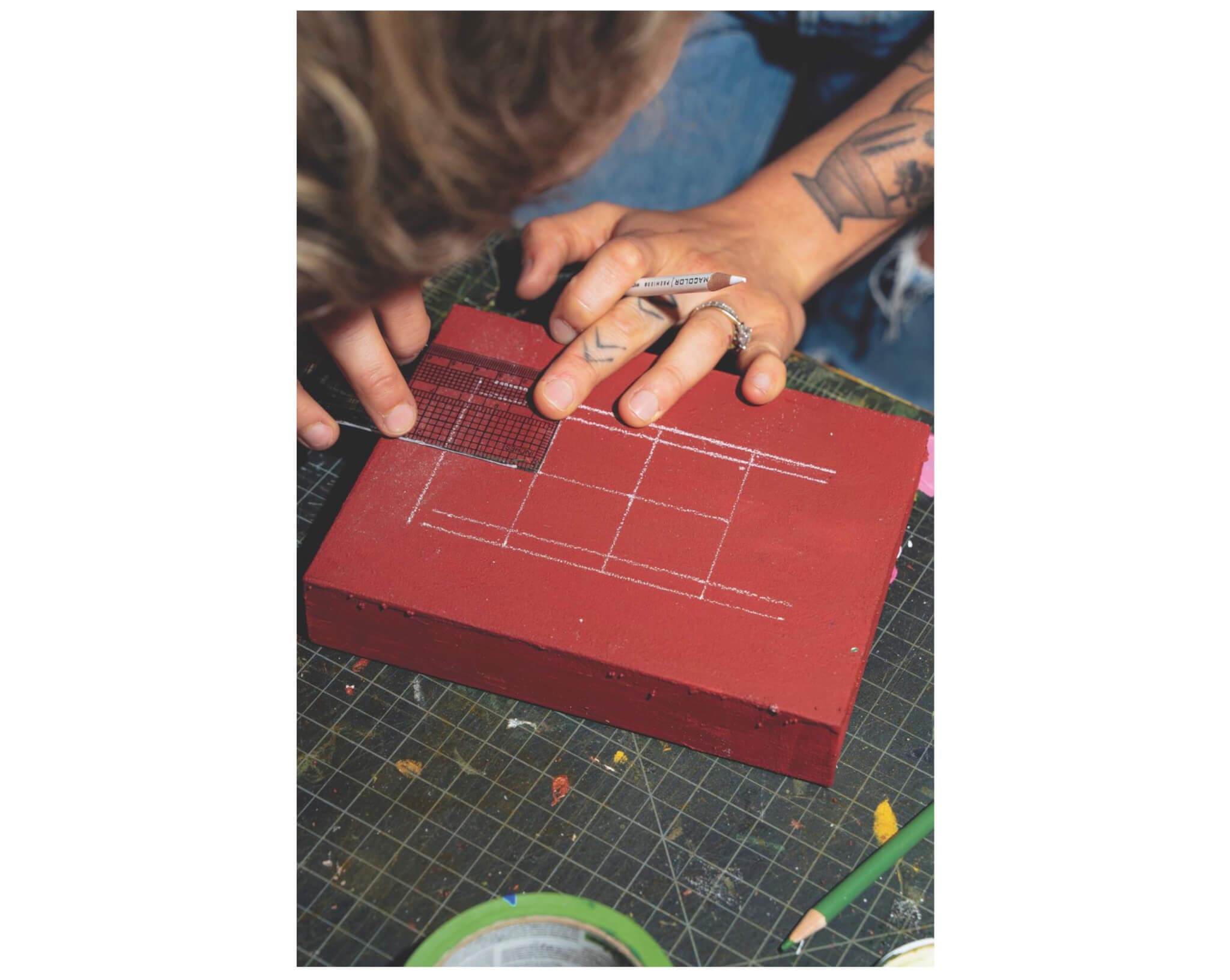 Creating studies of courts allows Stewart to test colors and textures before rendering them in a larger form. Photo by Cameron Kincheloe for Boston Art Review.